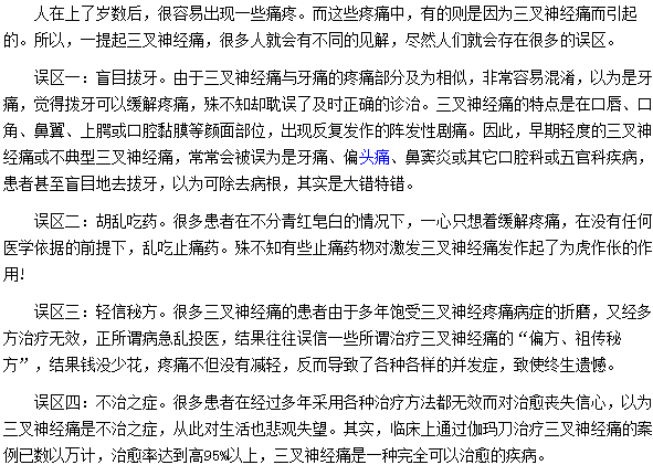 三叉神經(jīng)痛治療易入誤區(qū)都有哪些?相信很多被三叉神經(jīng)痛困擾的朋友都很想了解,為此,醫(yī)學(xué)教育網(wǎng)小編整理了“三叉神經(jīng)痛治療易入誤區(qū)大盤點(diǎn)”這篇文章,供大家參考閱讀。