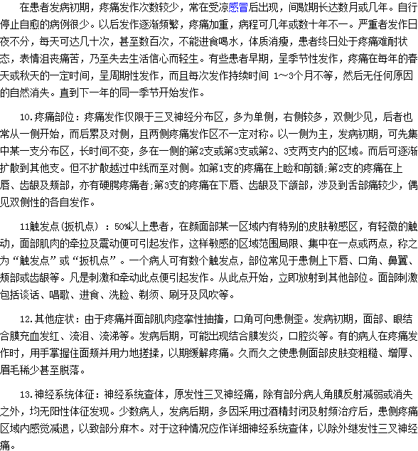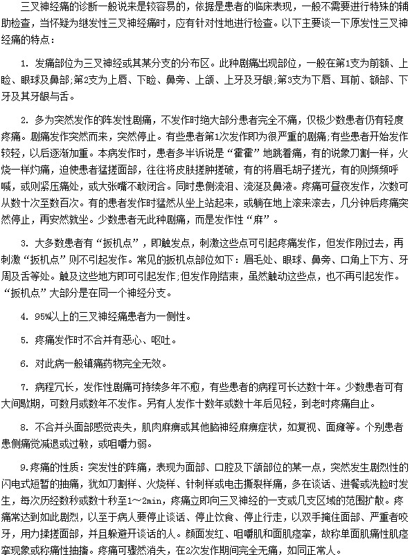 三叉神經(jīng)痛的癥狀表現(xiàn)很復(fù)雜,還特別讓人容易混淆,誤認(rèn)為是一般的疼痛,完全沒有在意,所以在這里提醒廣大朋友們一定要注意您的身體的細(xì)微變化。以上就是“原發(fā)性三叉神經(jīng)痛的特點(diǎn)”的相關(guān)內(nèi)容,相信大家已經(jīng)有所了解,希望上述文章能夠幫助到大家。