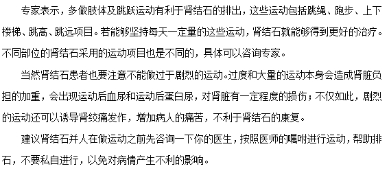 我們都知道多喝水有助于腎結(jié)石的排除,排除腎結(jié)石的方式除了多喝水外還包括做運(yùn)動(dòng),適當(dāng)?shù)倪\(yùn)動(dòng)也有利于腎結(jié)石排石處理。什么運(yùn)動(dòng)有助于腎結(jié)石排石呢?一起來(lái)看下面的文章: