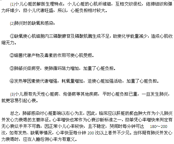 患嚴(yán)重肺炎的患兒以及合并先天性心臟病的肺炎患兒,往往易發(fā)生心力衰竭,其原因可能與以下幾種因素有關(guān):