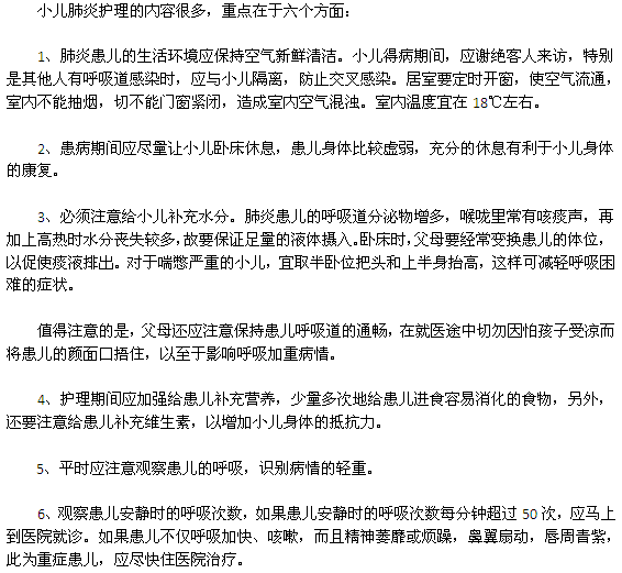 看了以上介紹您對小孩的肺炎的護理有了了解吧。專家說,肺炎嚴重危害孩子的健康,在生活中要有效的預防,多運動,注意飲食習慣,有身體不適,請立即去醫(yī)院就診,以免耽誤病情。