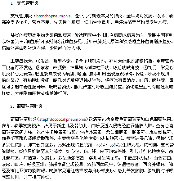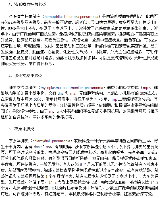 小兒肺炎在日常生活中是難免會有發(fā)生的,一旦發(fā)生就要積極的治療。很多家長都不知道小兒肺炎一共分為六種,小面小編就給您詳細介紹下這六種肺炎。具體如下: