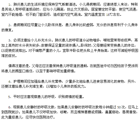 在我國(guó),肺炎是引起嬰幼兒死亡率第一位的疾病。不過(guò)父母也不順利考試分緊張,只要配合醫(yī)生積極治療,加強(qiáng)護(hù)理,病兒會(huì)很快恢復(fù)健康,下面請(qǐng)看小兒肺炎護(hù)理的六個(gè)方面: