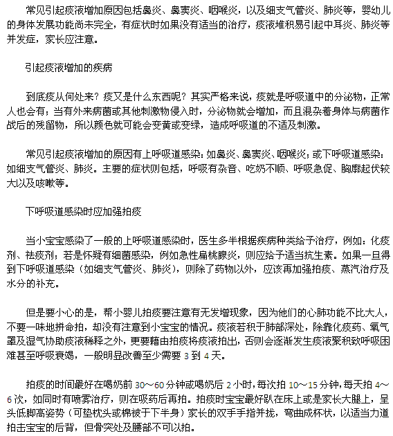 兒科門診中常常有家長問,為什么總是覺得小寶寶喉嚨有痰聲,卻又沒咳嗽或咳不出來?吃了一堆藥還是沒改善;言談中顯得非常擔(dān)憂,卻又不知如何是好,下面小編帶您了解下寶寶有痰咳不出怎么辦: