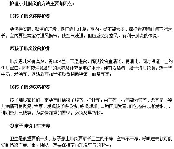 小兒肺炎需要投入更多的關(guān)愛和護(hù)理,肺炎病情不僅僅要做好治療,更需要在治療期間做好護(hù)理工作,這樣更有利于孩子肺炎病情得到有效的恢復(fù),醫(yī)生介紹說小兒肺炎如果治療不徹底,很容易復(fù)發(fā),所以家長需要好好的護(hù)理,掌握怎么護(hù)理小兒肺炎的方法。