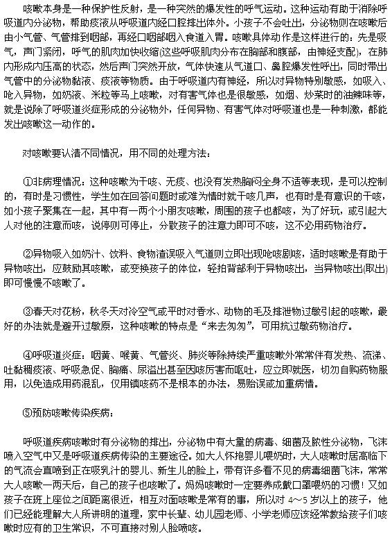 以上就是由醫(yī)學(xué)教育網(wǎng)搜集整理關(guān)于不同咳嗽處理辦法的相關(guān)信息。小編提醒,對于咳嗽來說,對癥下藥才是最主要的,同時在生活中要有效的預(yù)防,多運(yùn)動,注意飲食習(xí)慣,有身體不適,請立即去醫(yī)院就診,以免耽誤病情。