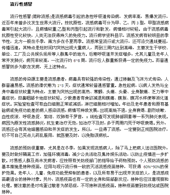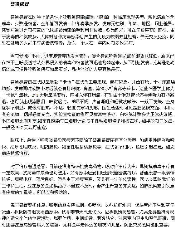 以上介紹了普通感冒和流行性感冒這兩種病的主要區(qū)別、治療與預(yù)防,這是兩種在冬季常見的疾病,前者病情較平和,但多發(fā),后者則較兇險,有時會發(fā)生流行。當(dāng)然也不要過分緊張,草木皆兵,只要掌握一定的醫(yī)療保健知識,自然就會提高自己的健康水平。