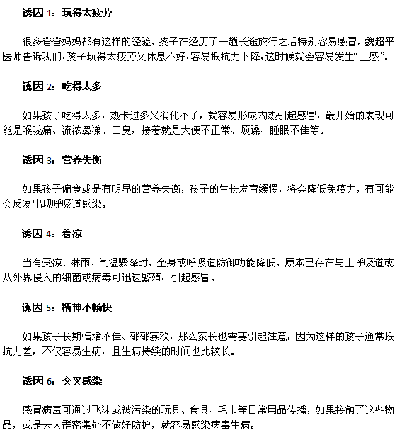 在生活中,如果家里面的寶寶突然咳嗽發(fā)熱起來,一定都能令家里的大人緊張不已的。特別是在季節(jié)交替中,天氣多變,是感冒的高發(fā)季節(jié),許多醫(yī)院的兒內(nèi)科門診人潮涌涌,其中呼吸道疾病更是占了大多數(shù),由于呼吸道感染引發(fā)發(fā)熱的患兒也不在少數(shù)。小兒患上呼吸道感染一般都有誘因,關(guān)鍵是家長平時要做好護理工作,尤其要增強孩子的抵抗力,下面就讓小編給大家講講最容易被家長忽略的小兒感冒誘因。