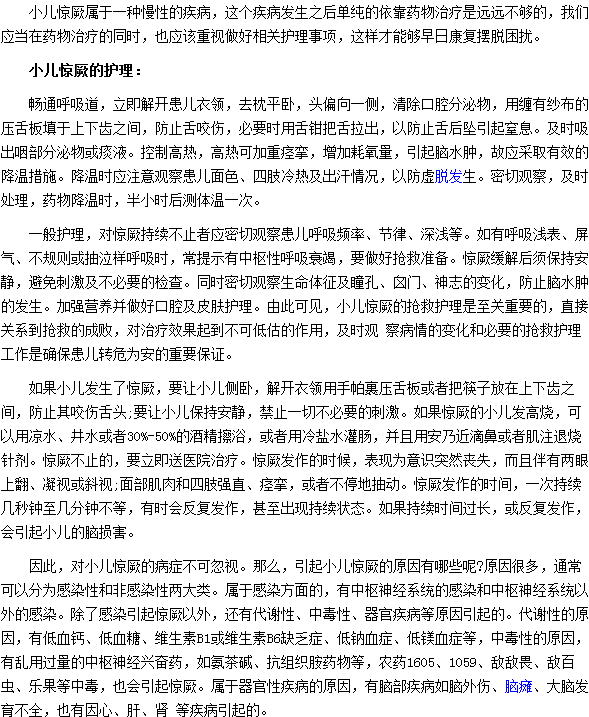 護理高燒小兒驚厥需要注意哪些事項就為大家介紹完了,一旦患有小兒驚厥這個疾病我們不容忽視治療,要科學(xué)正確的采取治療護理措施,才能夠幫助小兒驚厥疾病患者。