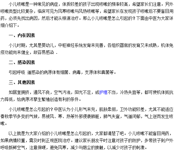 您想知道小兒咳嗽是怎么引起的嗎?相信您看了這篇有關小兒咳嗽是怎么引起的文章,您就了解了。