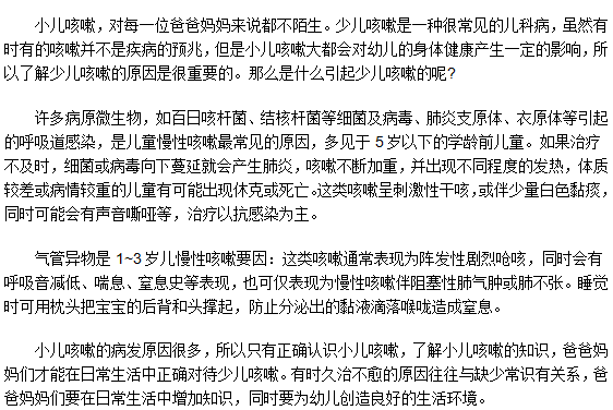相信有很多人對于引發(fā)少兒的咳嗽的原因比較感興趣,那么就請跟隨醫(yī)學(xué)教育網(wǎng)一起了解一下相關(guān)的內(nèi)容吧。