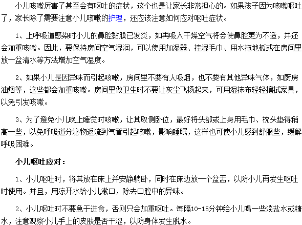以上就是“小兒咳嗽導(dǎo)致嘔吐時(shí)家長應(yīng)如何應(yīng)對”的內(nèi)容,相信大家已經(jīng)了解,小兒的胃功能不是很健全,非常容易因?yàn)樾嚎人远鴩I吐,作為家長應(yīng)該注意,如果出現(xiàn)小兒咳嗽導(dǎo)致嘔吐這樣的癥狀,飲食方面要多做容易消化的食物給患兒,用藥治療小兒咳嗽的時(shí)候也要注意藥物,嚴(yán)格控制刺激性藥物的使用。
