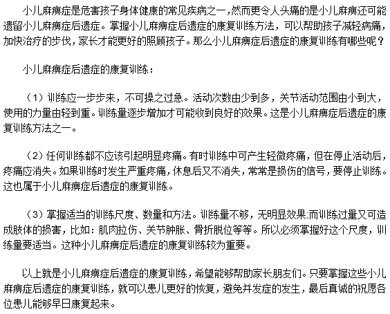 相信很多朋友一定會(huì)對(duì)小兒麻痹癥后遺癥的康復(fù)訓(xùn)練方法很感興趣,下面就請(qǐng)各位考生仔細(xì)閱讀這篇關(guān)于小兒麻痹癥后遺癥的康復(fù)訓(xùn)練方法,希望對(duì)大家能夠有幫助。