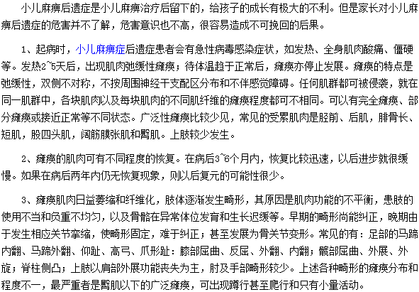 您想知道關(guān)于小兒麻痹后遺癥會給孩子帶來哪些危害嗎?相信您看了這篇有關(guān)小兒麻痹后遺癥會給孩子帶來哪些危害的文章,您就了解了。