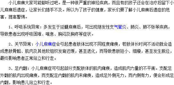 關于小兒麻痹后遺癥發(fā)病時會帶來哪些危害?相信很多人都比較想了解,醫(yī)學教育網(wǎng)編輯特撰文如下:
