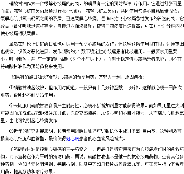 硝酸甘油何為不宜作為心絞痛的預(yù)防用藥,關(guān)于這個(gè)問(wèn)題相信很多朋友都不清楚,為幫助大家了解相關(guān)知識(shí),醫(yī)學(xué)教育網(wǎng)小編特整理了硝酸甘油何為不宜作為心絞痛的預(yù)防用藥的具體內(nèi)容如下: