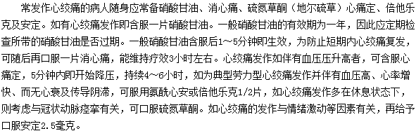 以上就是由醫(yī)學(xué)教育網(wǎng)整理的關(guān)于常發(fā)作心絞痛的病人應(yīng)隨身攜帶的藥物的內(nèi)容,相信大家了解,希望對大家有幫助。本網(wǎng)站所發(fā)布的文章并不意味著贊同或證實其觀點,僅作為參考信息使用。疾病診療或藥品選用等專業(yè)問題請及時到醫(yī)院就診或咨詢相關(guān)醫(yī)生。