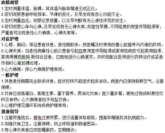 總的來說,病毒性心肌炎的保健護(hù)理對(duì)患有該疾病的患者十分重要,保健護(hù)理得當(dāng)?shù)脑?,病毒性心肌炎患者?huì)加快康復(fù)速度。上述內(nèi)容是醫(yī)學(xué)教育網(wǎng)小編為您搜集整理的“病毒性心肌炎的保健護(hù)理方式方法”信息內(nèi)容,小編在此提醒心肌炎患者要及時(shí)治療,要保持好心情,好的心態(tài)對(duì)于對(duì)抗病魔是至關(guān)重要的。在此,祝大家身體健康!