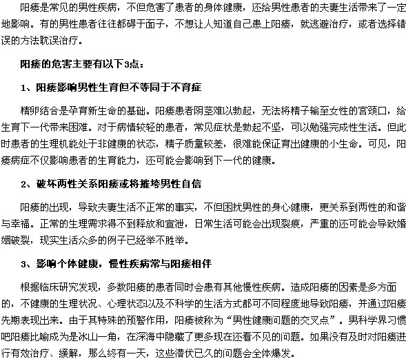 相信很多人都想知道陽痿對男性的影響是什么?下面請大家仔細(xì)閱讀醫(yī)學(xué)教育網(wǎng)編輯專門為您整理的陽痿對男性的影響這篇文章吧。