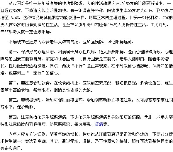 年紀(jì)大了就一定會(huì)發(fā)生陽(yáng)痿的情況嗎?為什么年紀(jì)大了就一定會(huì)發(fā)生陽(yáng)痿的情況?相信很多人對(duì)此問(wèn)題都很想了解,下面醫(yī)學(xué)教育網(wǎng)小編特整理了相關(guān)內(nèi)容,供大家閱讀了解。