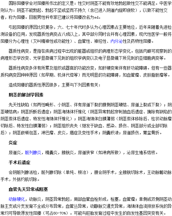 造成陽(yáng)痿的器質(zhì)性原因有哪些?相信很多男性朋友都想知道,那么什么是造成陽(yáng)痿的器質(zhì)性原因呢?相信大家看了下面這篇文章就會(huì)明白了。