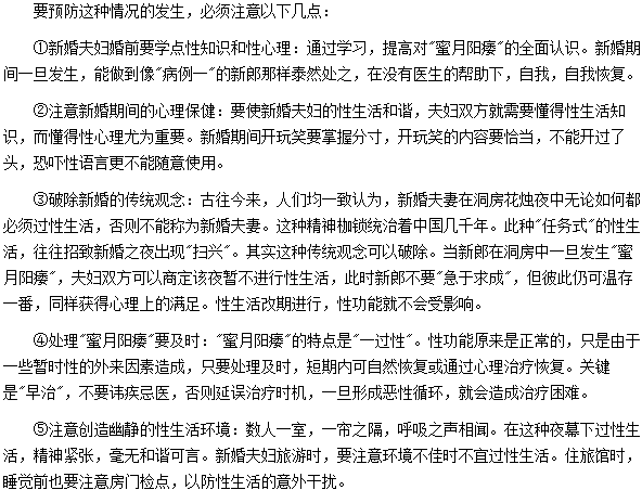 以上就是新婚期如何防止發(fā)生陽(yáng)痿的情況的內(nèi)容,相信大家在看完醫(yī)學(xué)教育網(wǎng)小編的介紹后,對(duì)新婚期如何防止發(fā)生陽(yáng)痿的情況已經(jīng)有所了解,希望上述文章能夠幫助到大家。