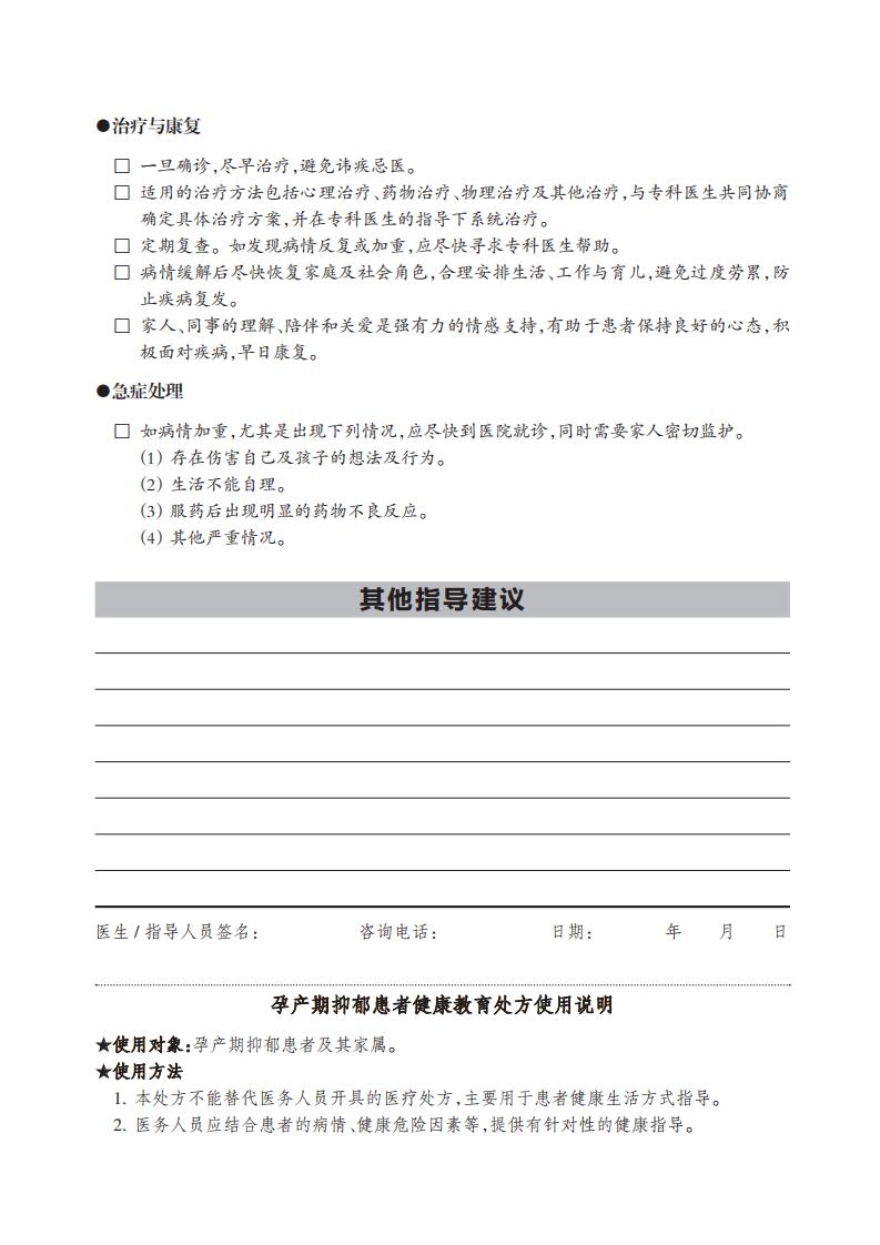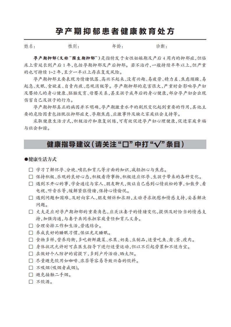 孕產(chǎn)期抑郁的危害很大,嚴重時會影響孕產(chǎn)婦 及嬰幼兒的身心健康、胚胎發(fā)育、母嬰關系,甚至孩子成年后的身心健康,部分孕產(chǎn)婦會出現(xiàn) 傷害自己及孩子的行為。 孕產(chǎn)期抑郁真正的病因并不明確,孕產(chǎn)期激素水平的劇烈變化起到重要的作用,其他主 要的危險因素包括既往抑郁癥史、孕期焦慮、應激事件及缺乏家庭社會支持等。 采取健康生活方式,積極治療和康復訓練,可有效促進孕產(chǎn)婦心理健康,促進家庭幸福 與社會和諧。