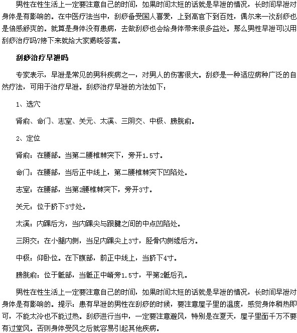 以上就是“刮痧治療男性早泄如何選穴及定位?”的具體內(nèi)容介紹,相信廣大男性朋友已經(jīng)有所了解了,希望上述文章能夠?qū)Υ蠹矣兴鶐椭?/p>
