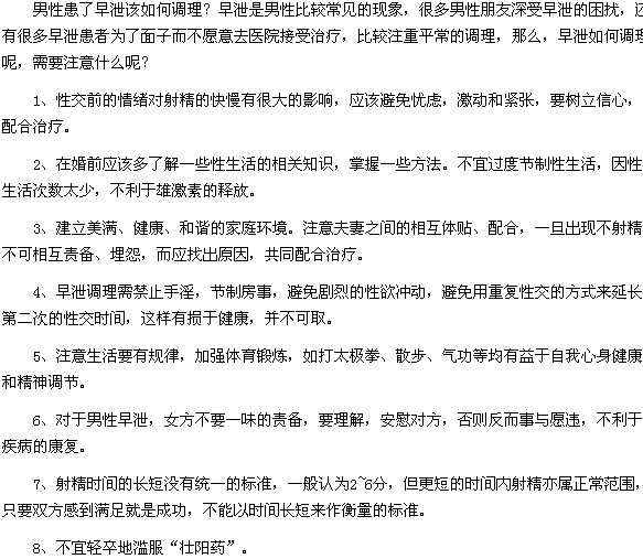 男性患上早泄的八種調(diào)理方法是什么,相信很多人都想知道,那么什么是男性患上早泄的八種調(diào)理方法呢?相信大家看了下面這篇文章就會明白了。