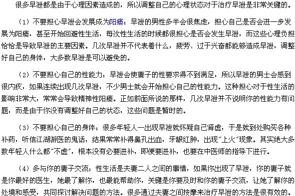 為什么及時(shí)調(diào)整心理狀態(tài)對(duì)治療早泄非常關(guān)鍵?相信很多男性朋友對(duì)此都不是很了解,醫(yī)學(xué)教育網(wǎng)小編特整理了“及時(shí)調(diào)整心理狀態(tài)對(duì)治療早泄非常關(guān)鍵”相關(guān)內(nèi)容,供大家了解。