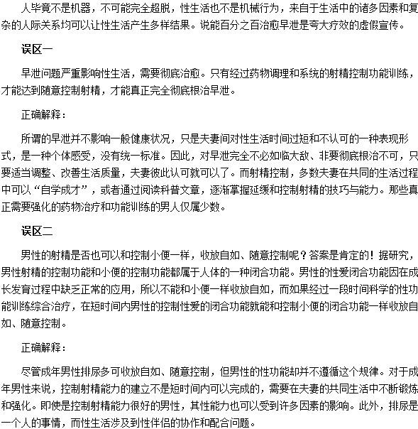 很多男性朋友覺得控制早泄可以治療早泄,那么,大家知道控制射精治療早泄的誤區(qū)有哪些嗎?下面醫(yī)學(xué)教育網(wǎng)小編整理了控制射精治療早泄的誤區(qū)這篇文章,希望對大家有幫助。