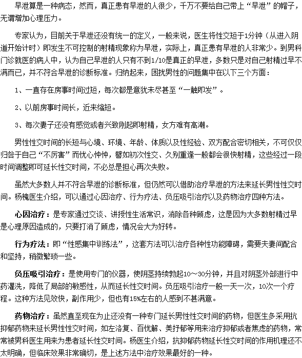 困擾男性的早泄問題集中在哪幾個(gè)方面?相信大家通過上面小編的介紹,已經(jīng)清楚了,如果您患有早泄,不妨試試小編上面介紹的幾個(gè)方法,希望能夠幫助到大家。