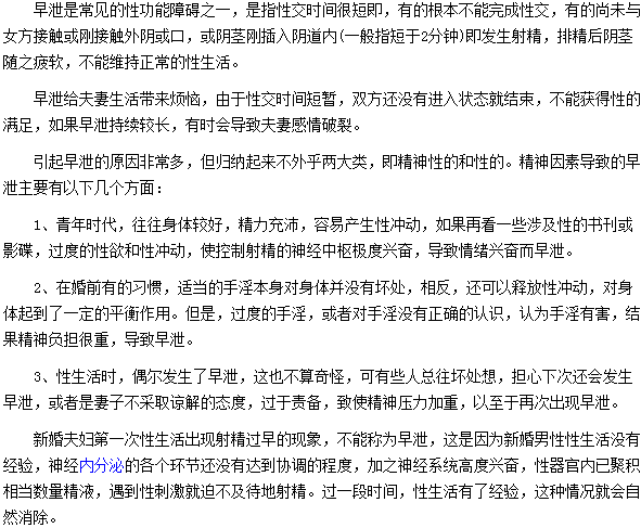 相信很多人都想知道精神因素導(dǎo)致的早泄主要有哪些方面?下面請大家仔細(xì)閱讀醫(yī)學(xué)教育網(wǎng)編輯專門為您整理的精神因素導(dǎo)致的早泄主要方面這篇文章吧。