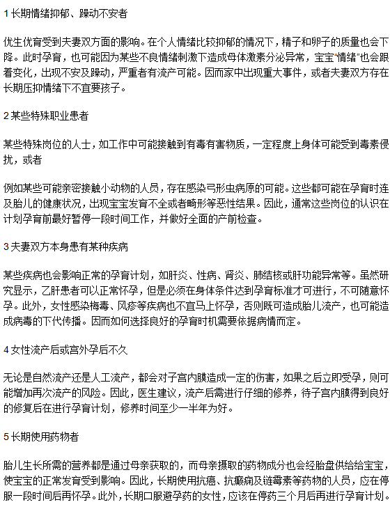 所謂生孩子要講求時(shí)機(jī),否則容易造成早產(chǎn)、流產(chǎn)及畸形胎等結(jié)果。建議各位夫妻要提前做好孕前檢查,使雙方身體條件吻合優(yōu)生計(jì)劃時(shí),再進(jìn)行下一步打算。
