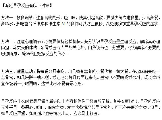 一般來說早孕反應(yīng)的時間會在6個星期到懷孕三個月,而反應(yīng)最嚴重的時候,一般會在早孕期間的早晨或者餐后。當早孕期結(jié)束的時候,癥狀自燃消失。不過也有不少女性完全沒有懷孕反應(yīng)。那么早孕女性遇到什么情況需要盡快警惕呢?