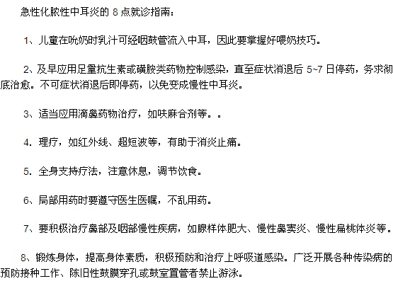 大家都知道急性化膿性中耳炎多發(fā)于兒童。因?yàn)閶胗變旱难使墓芏?、寬而平直,如哺乳位置不?dāng),平臥吮奶,乳汁或嘔吐物可經(jīng)咽鼓管流入中耳。所以很有可能引發(fā)中耳炎。那么當(dāng)孩子患有中耳炎后我們?cè)撛趺崔k呢?下面醫(yī)學(xué)教育網(wǎng)小編特地為大家編輯整理了急性化膿性中耳炎的8點(diǎn)就診指南這篇文章,希望對(duì)大家有所幫助。