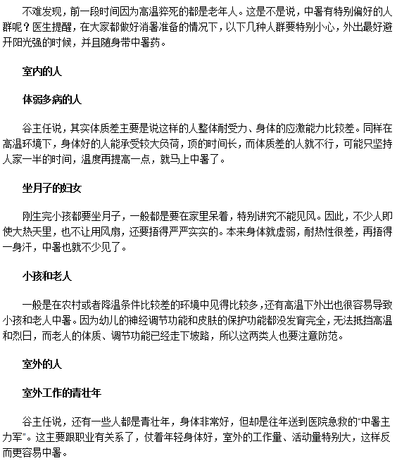 關(guān)于高溫天氣八類人需慎防中暑,相信很多人都比較感興趣,醫(yī)學(xué)教育網(wǎng)編輯特撰文如下:
