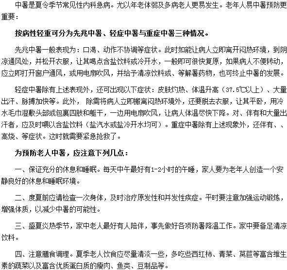 關(guān)于夏季老年人易中暑預(yù)防更重要的內(nèi)容,很多人都想知道,醫(yī)學(xué)教育網(wǎng)編輯經(jīng)過多方搜尋,現(xiàn)將夏季老年人易中暑預(yù)防更重要的相關(guān)內(nèi)容分享給大家,希望對大家有所幫助。