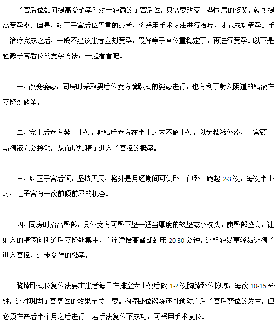 很多人都想了解子宮后位如何提高受孕率,為此,醫(yī)學教育網(wǎng)編輯特別整理了這篇關于子宮后位的文章,具體如下: