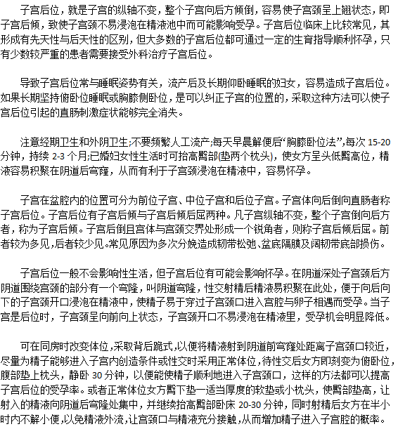 大家都知道要想成功懷孕,最好有一個(gè)良好的正位子宮。可部分備孕女性去醫(yī)院B超檢查后卻發(fā)現(xiàn)自己不是子宮前位就是子宮后位。那如若檢查出來子宮后位,應(yīng)該怎樣備孕呢?
