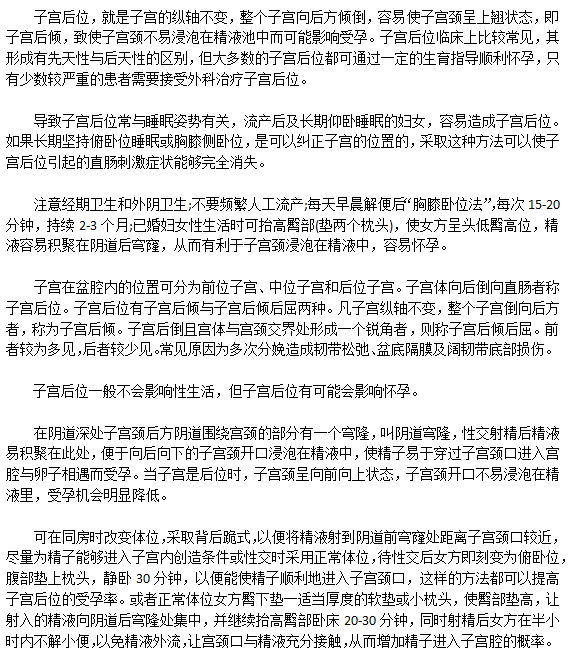 大家都知道要想成功懷孕,最好有一個良好的正位子宮??刹糠謧湓信匀メt(yī)院B超檢查后卻發(fā)現(xiàn)自己不是子宮前位就是子宮后位。那如若檢查出來子宮后位,應(yīng)該怎樣備孕呢?