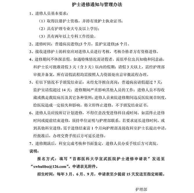 首都醫(yī)科大學宣武醫(yī)院護士進修申請表