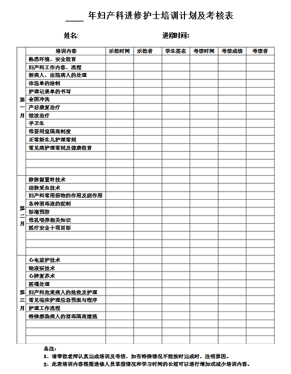 7、學習??谱o理理論和技能。熟悉婦產科常見病的護理常規(guī)及健康教育。