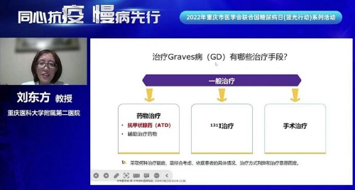 劉東方教授結合自身幾十年的臨床經(jīng)驗總結分享了甲狀腺功能亢進癥的十個問題,重點講解了甲亢的藥物治療、生活方式注意事項以及甲亢患者與妊娠的多種關系等。最后,劉教授提醒甲亢患者面對新冠肺炎疫情封控期間要不能隨意停藥;規(guī)律隨訪;特別注意調(diào)整自己的心態(tài);加強自身防護。