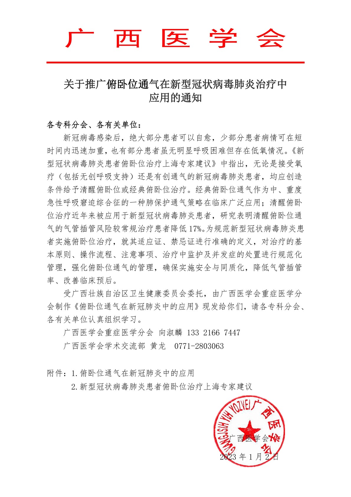 日前,廣西醫(yī)學會發(fā)布了關于推廣俯臥位通氣在新型冠狀病毒肺炎治療中應用的通知,為方便大家了解,醫(yī)學教育網(wǎng)小編特意收集整理了如下內(nèi)容,歡迎查看!