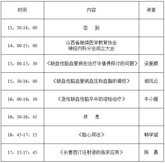缺血性腦卒中治療新進(jìn)展學(xué)術(shù)研討會會議日程