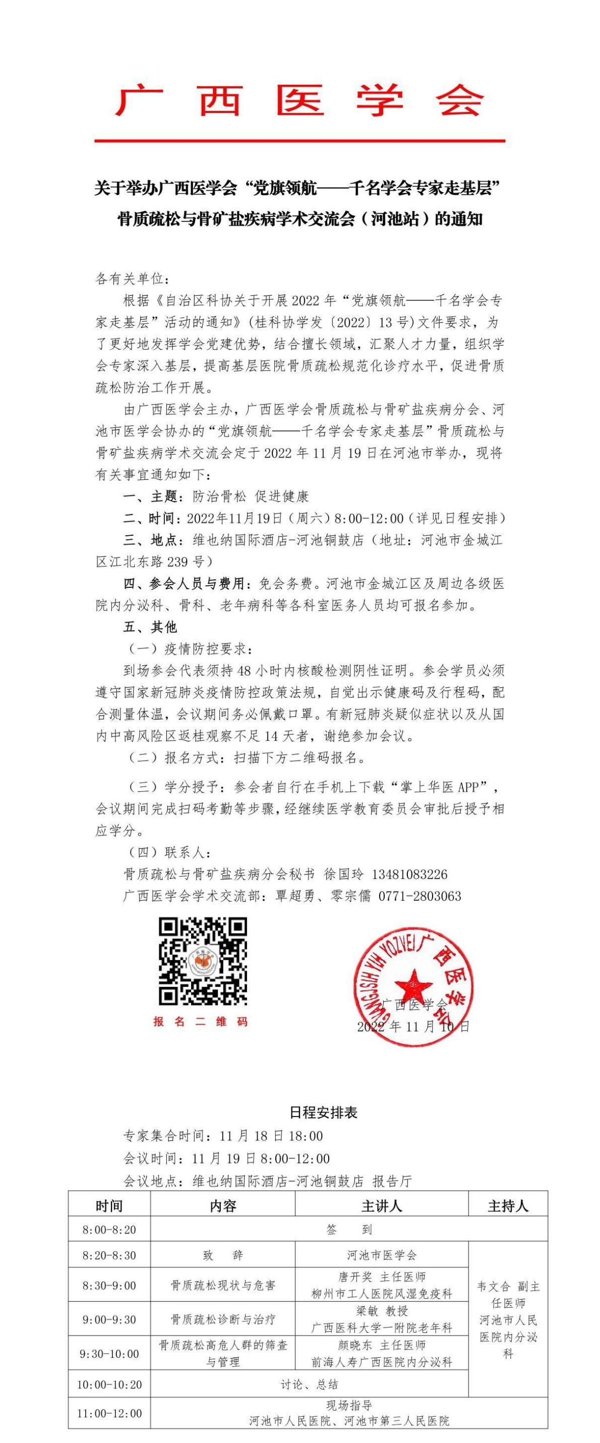 以上就是小編為大家整理的關(guān)于舉辦廣西醫(yī)學(xué)會“黨旗領(lǐng)航——千名學(xué)會專家走基層”骨質(zhì)疏松與骨礦鹽疾病學(xué)術(shù)交流會(河池站)的通知,想了解更多有關(guān)繼續(xù)醫(yī)學(xué)教育、考試培訓(xùn)等相關(guān)優(yōu)質(zhì)資訊還請多多關(guān)注醫(yī)學(xué)教育網(wǎng)!
