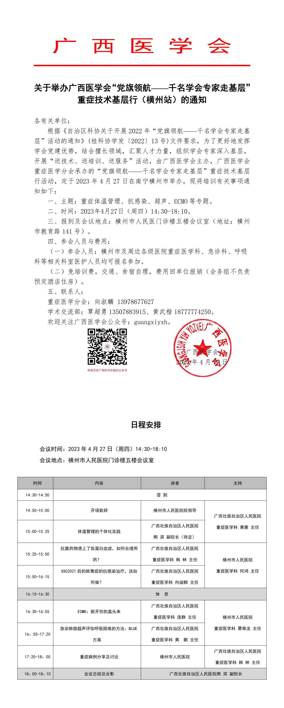以上就是小編為大家整理的關于舉辦廣西醫(yī)學會“黨旗領航——千名學會專家走基層” 重癥技術基層行(橫州站)的通知,想了解更多有關繼續(xù)醫(yī)學教育、考試培訓等相關優(yōu)質資訊還請多多關注醫(yī)學教育網(wǎng)!