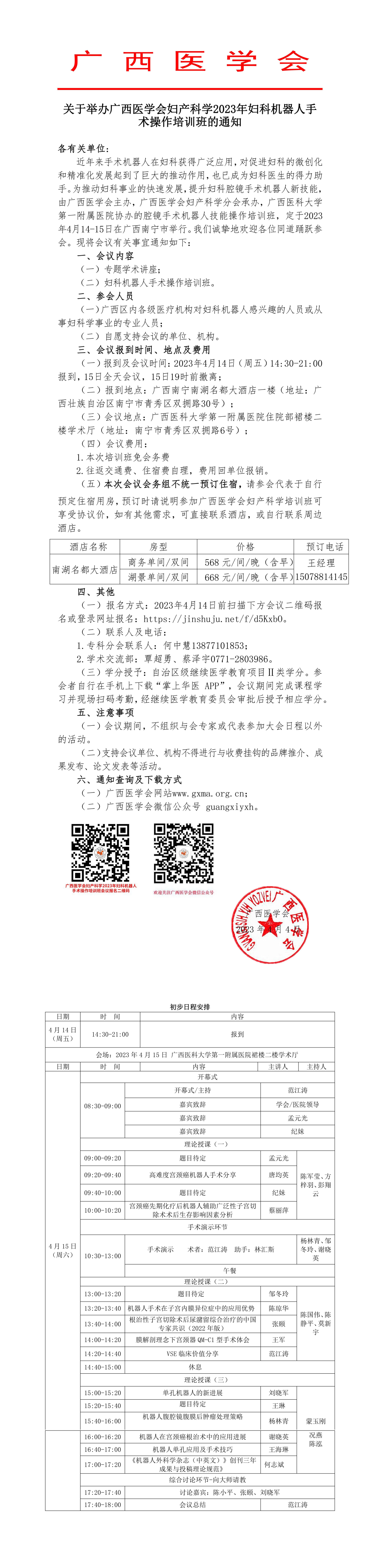 以上就是小編為大家整理的關(guān)于舉辦廣西醫(yī)學(xué)會(huì)婦產(chǎn)科學(xué)2023年婦科機(jī)器人手術(shù)操作培訓(xùn)班的通知,想了解更多有關(guān)繼續(xù)醫(yī)學(xué)教育、考試培訓(xùn)等相關(guān)優(yōu)質(zhì)資訊還請(qǐng)多多關(guān)注醫(yī)學(xué)教育網(wǎng)!