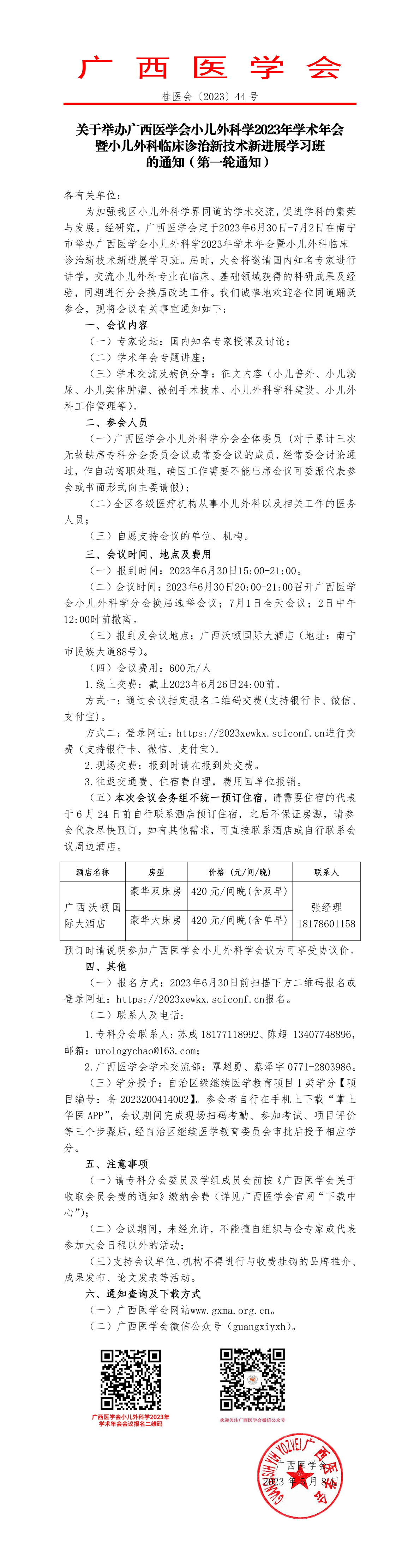 以上就是小編為大家整理的關于舉辦廣西醫(yī)學會小兒外科學2023年學術年會暨小兒外科臨床診治新技術新進展學習班的通知(第一輪通知),想了解更多有關繼續(xù)醫(yī)學教育、考試培訓等相關優(yōu)質資訊還請多多關注醫(yī)學教育網(wǎng)!